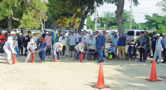 大会には、長洲町役場から、生涯学習課及び危機管理対応室から3名、競技者66名で行われ、競技終了後に当消防本部予防課員による住宅用火災警報器の説明と訓練用水消火器による消火器の取扱い訓練を行いました。