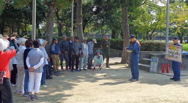 長洲町のグラウンドゴルフ大会にて火災予防運動を実施しました。