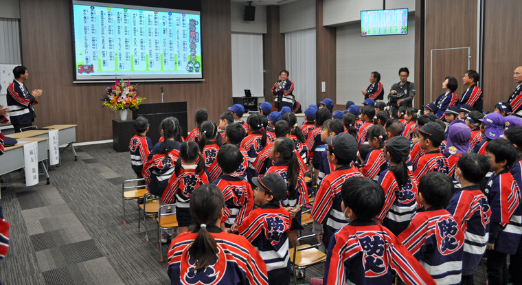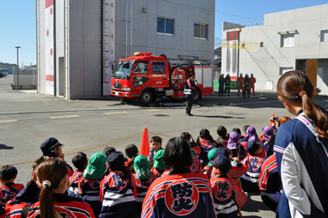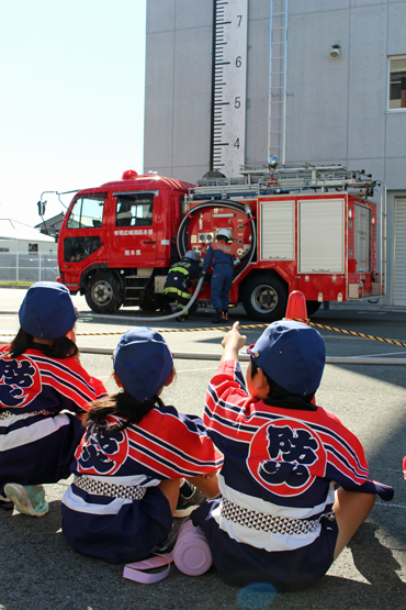| 10月30日(木)から約1か月半の期間で行うクラブ単位の個別体験学習では、各園で練習されてきた「火の用心のうた」「防火のちかい」の披露、防火アニメの上映、ありあけ防災館での煙体験、玉名消防署での消防車両見学など盛りだくさんの内容で実施します! | |