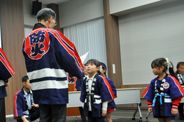 ![]() クラブ員による「火の用心のうた」「防火のちかい」を披露していただきました。 |