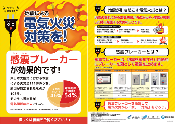 地震による電気火災防止のため感震ブレーカーを設置しましょう!